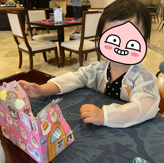 비행기에서 시간 때우기 정말 최고!! 이거 덕분에 6시간 비행 버텼음. 대신 엄마 & 아빠가 열심히 만들어 줘야 하지만... 그래도 아이 나름 풀칠도 하고 집도 꾸미고 역할극도 하고 엄청 신나게 놈. 아침에 일어나자마자 풀칠 삼매경, 호텔에서 쉬는 시간에도, 조식 먹으러 가서도 계속 가지고 놀아서 심심할 틈이 없었음. 정말 강추하는 아이템!!