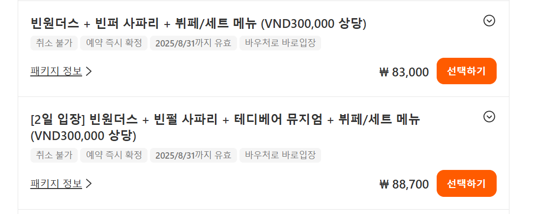 [2일 입장] 빈원더스+ 빈펄 사파리+ 테디베어 뮤지엄+ 뷔페/세트메뉴 구입처